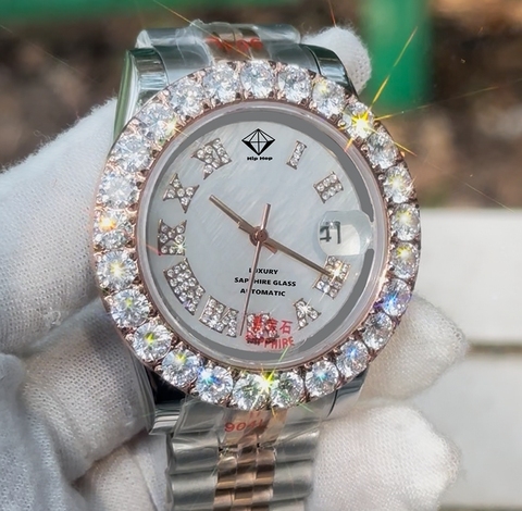 Orologio automatico da uomo Moissanite in oro rosa Hip Hop con diamanti ghiacciati orologio meccanico in acciaio inossidabile 904L