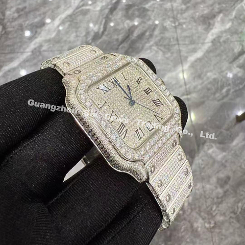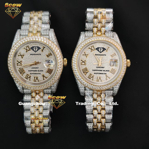 Yeni ürün su geçirmez en lüks VVS e-sınıf Moissanite İzle Bling safir cam mekanik saatler