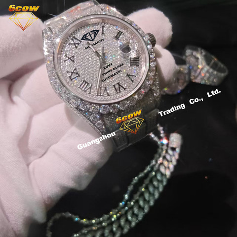2025 tasarımcı özelleştirilmiş lüks Hip Hop Moissanite buzlu İzle 100% elmas test paslanmaz çelik erkekler's mekanik İzle